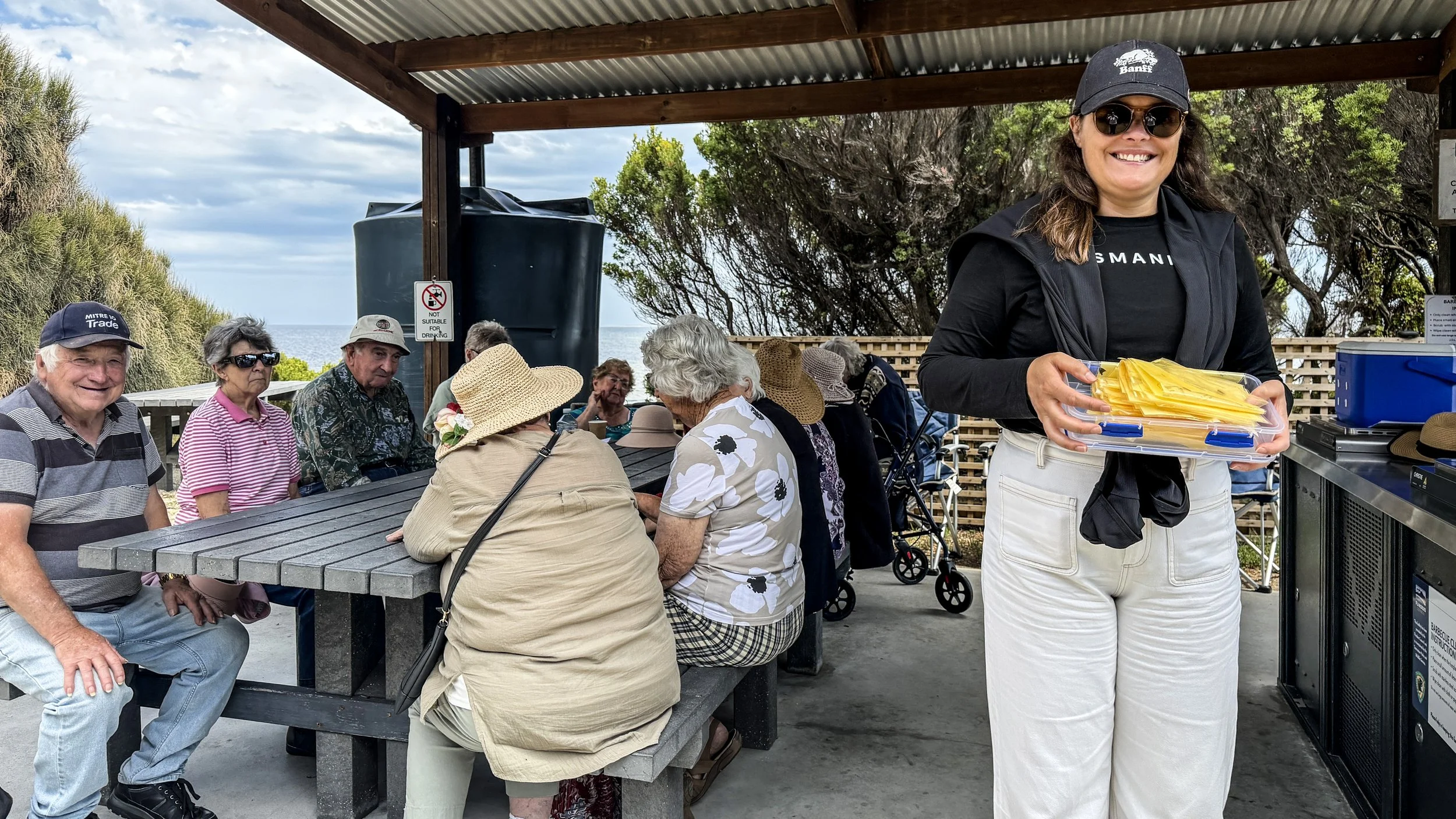 There’s something special about sharing a meal outdoors on Flinders Island. Good food, good company, sea air drifting in and the gentle hum of conversation. Recently, we spent a beautiful day at the Whitemark Foreshore with the Furneaux Friends at their Eating with Friends day, with Jess from Brand Tasmania joining in, and it turned into one of those simple moments that quietly says a lot about how we care for this place.